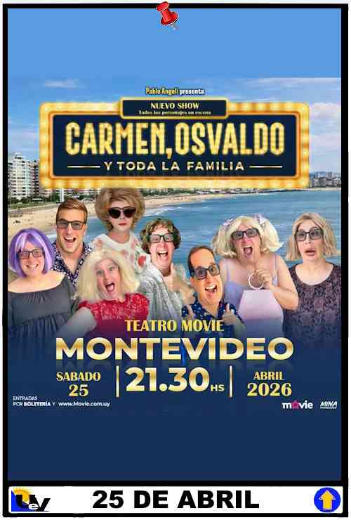 IMPORTANTE: Los flyers y banners de espectáculos, eventos, etc… presentes en ésta cartelera son obtenidos en Redes Sociales o suministrados por los interesados en su difusión, son publicados en forma GRATUITA en apoyo a la información y cultura en gral… no nos hacemos responsables por errores o suspensiones. *Sin ninguna obligación se puede aportar una donación para ayudarnos a seguir manteniendo éste servicio, ingrese en el botón DONATE del pie de página. Desde ya muchas gracias!!!